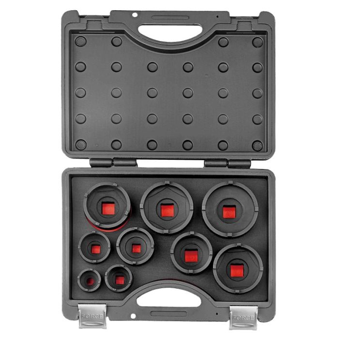 Force KM-hylsysarja 1/2” + 3/4” 9-osainen sarja 1/2”: KM4, 5, 6 3/4”: KM7, 8, 9, 10, 11, 12 Mutterin ulkomitta: KM4: Ø32 KM5: Ø38 KM6: Ø45 KM7: Ø52 KM8: Ø58 KM9: Ø65 KM10: Ø70 KM11: Ø75 KM12: Ø80