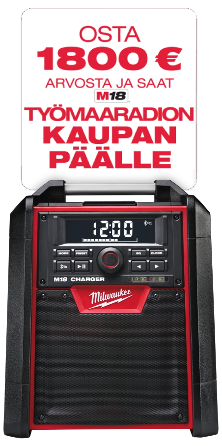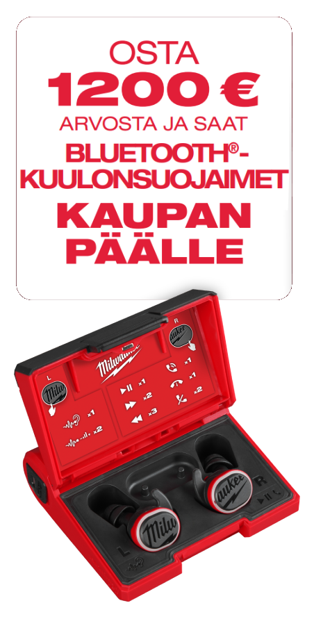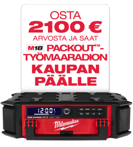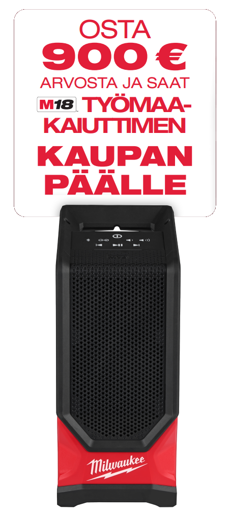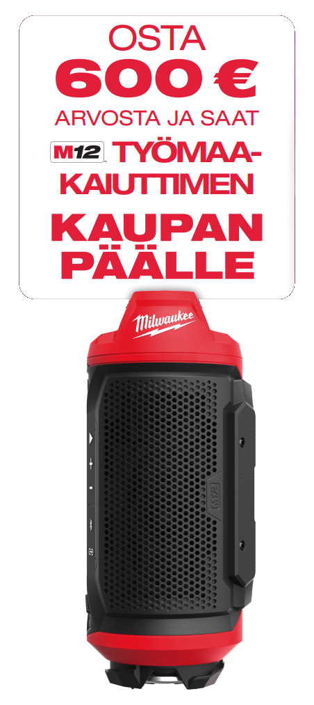 Kampanja-aikana 1.4.-31.5.2026 voi ostaa mitä tahansa MILWAUKEE®-tuotteita ja lähettää lunastuspyynnön kaupanpäällisestä MILWAUKEE® kotisivujen kautta. Yksi ostotosite kampanja-aikana ostetuista tuotteista oikeuttaa yhteen kaupanpäälliseen. Lunastuspyyntö lähetetään kampanja-aikana 1.4.–31.5.2026 MILWAUKEE® verkkosivujen kautta täyttämällä lomakkeen ja liittämällä mukaan ostotositteen. MILWAUKEE® käsittelee lunastuspyynnön ja ilmoittaa käsittelyn etenemisestä sähköpostitse. Lisätietoja: https://fi.milwaukeetool.eu/redemption-suomi/